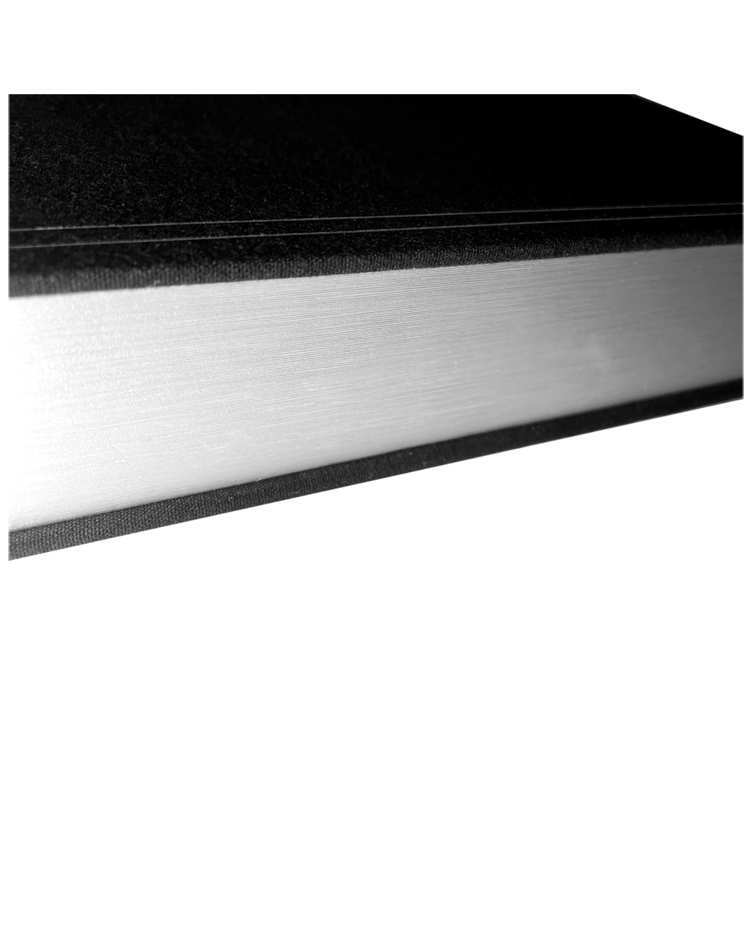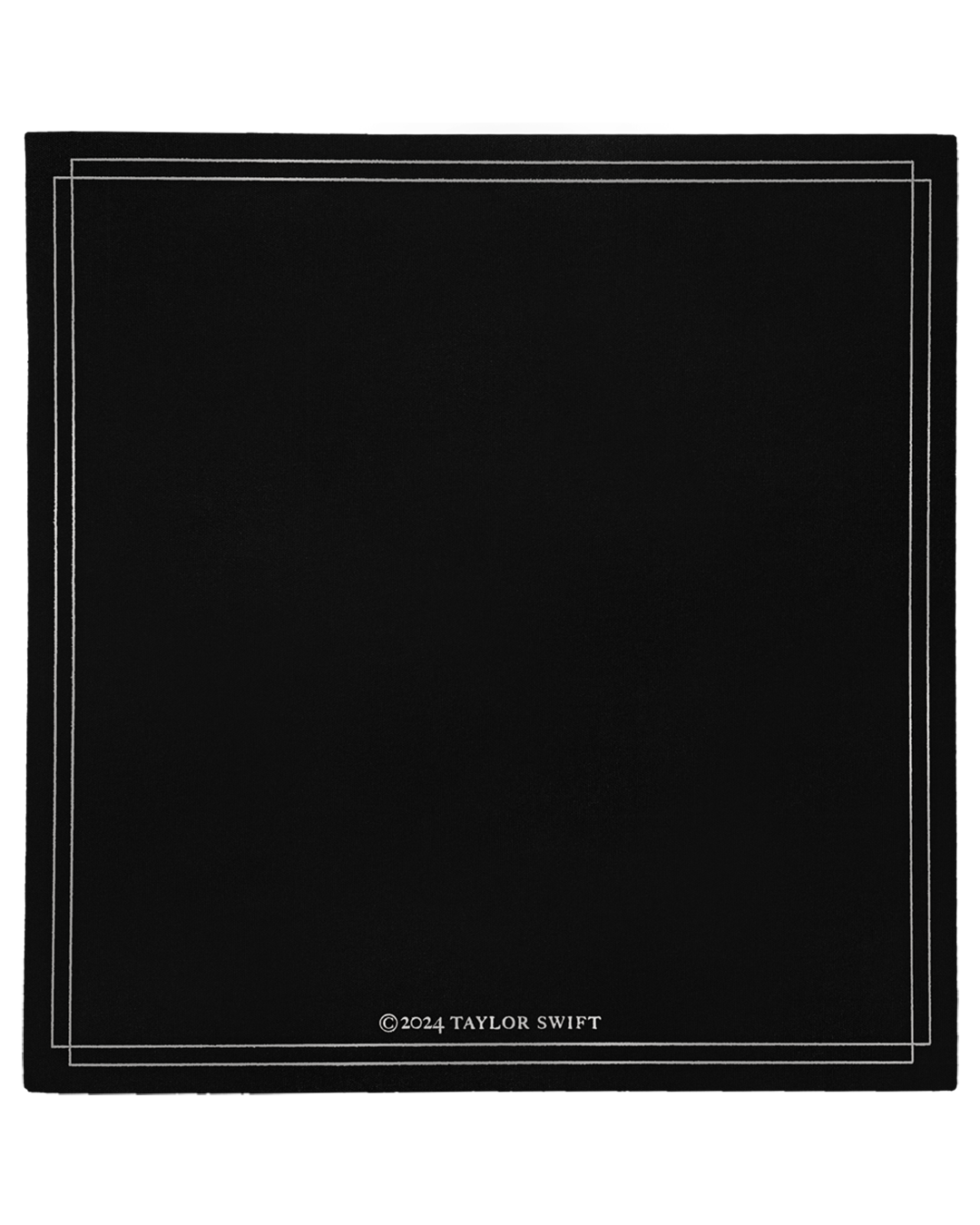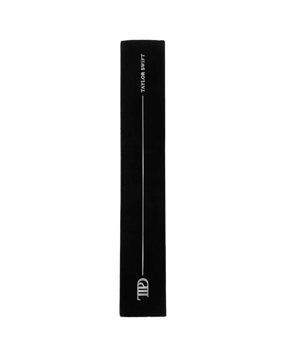 Black vinyl display case featuring metallic silver double line border design. TTPD album logo. and The Tortured Poets Department embossed on front with TTPD album logo. line design. and Taylor Swift embossed on side and ©2024 Taylor Swift with metallic silver double line border design embossed on back.